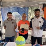 Nos 2 jeunes alternants Sifaxe et Sofian ont pu ainsi contribuer à la tenue du stand et répondre aux questions du public venu nombreux. Près de 80 personnes nous on laissé leurs coordonnées ; toutes les catégories étaient concernées même si le baby hand était très demandé !!!